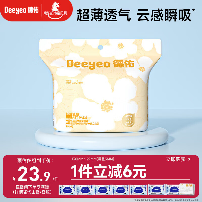 德佑一次性防溢乳垫100片透气溢乳贴哺乳期产后隔奶喂奶垫柔软防脱落