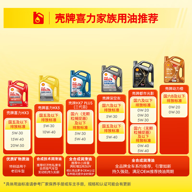 壳牌(Shell)全合成机油 0w-20(0w20) API SP级 4L超凡喜力都市光影版汽车保养