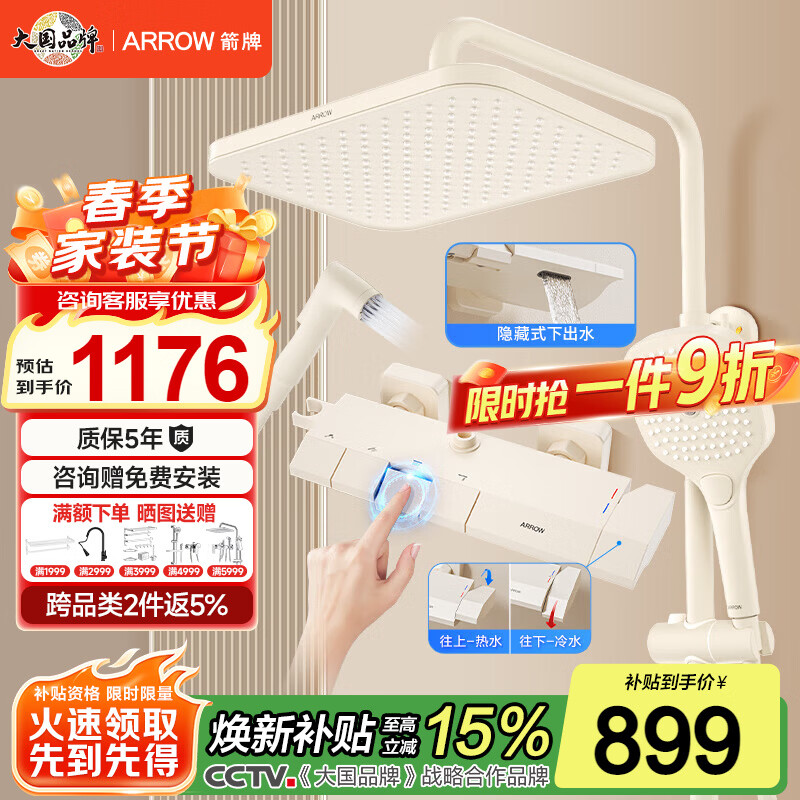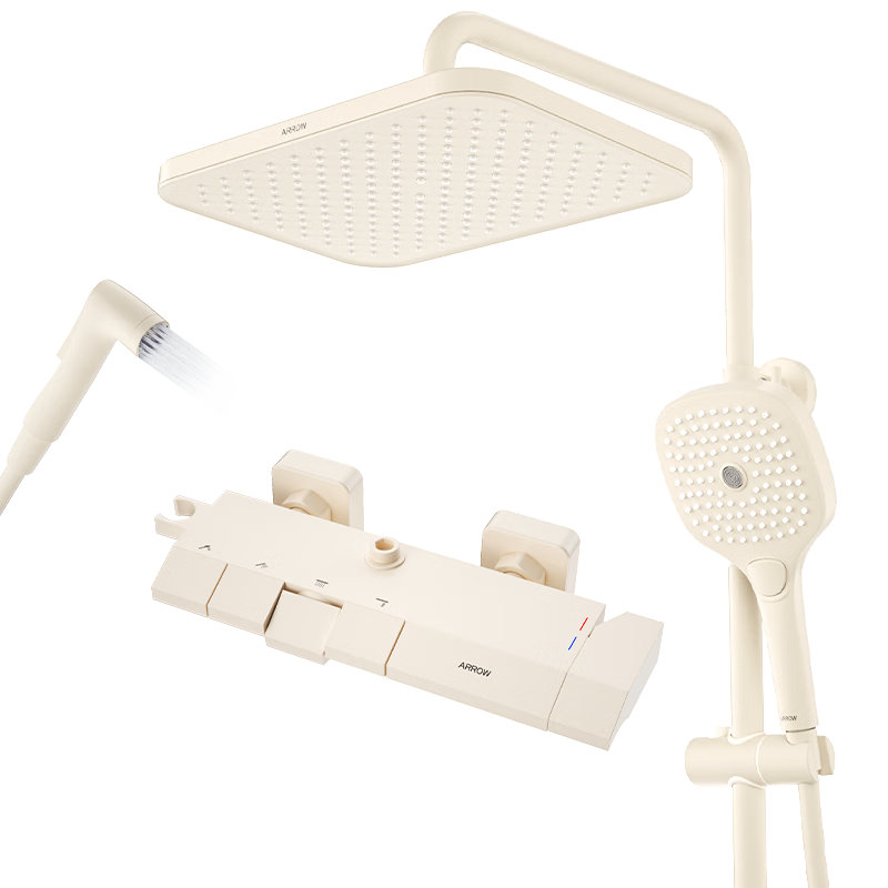 箭牌(ARROW)淋浴花洒套装 奶白钢琴按键花洒全套增压花洒喷头