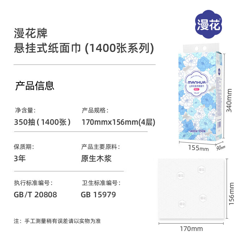 漫花山茶花超大包1400张悬挂底部抽取式纸面巾张加量装卫生纸厕纸 1400张*2提热卖