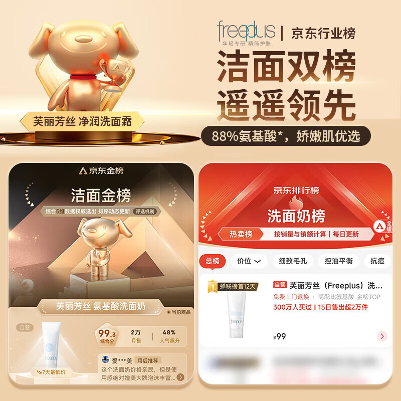 芙丽芳丝(Freeplus)氨基酸洁面乳泡沫洗面奶男女士250ml(有效期至2026年6-10月)