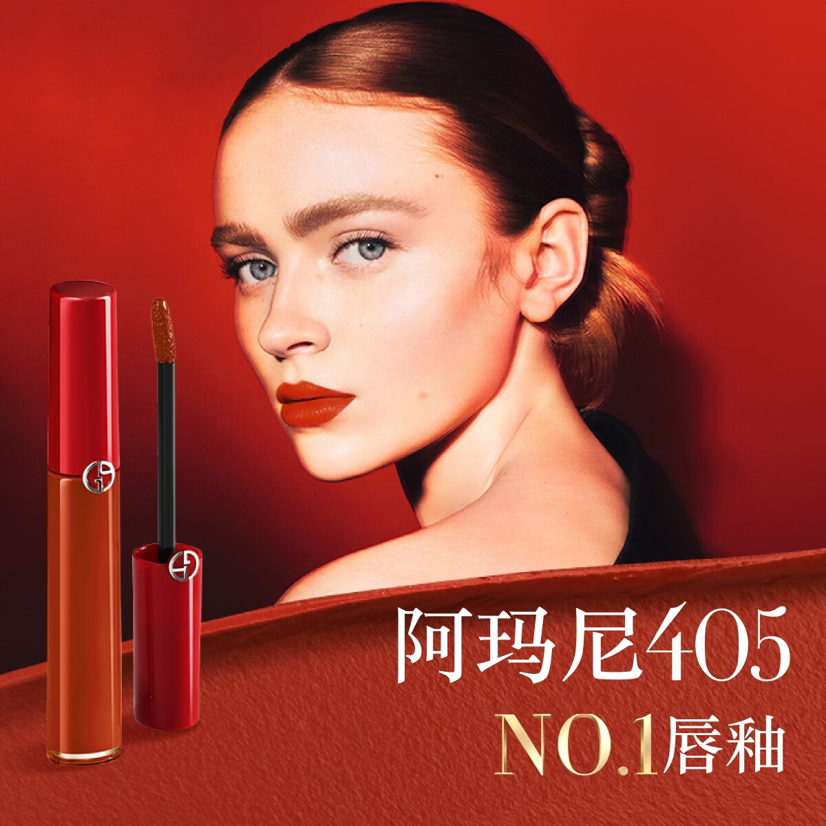 阿玛尼红管唇釉#405番茄红 素颜口红不沾杯润唇膏生日礼物送女友礼盒
