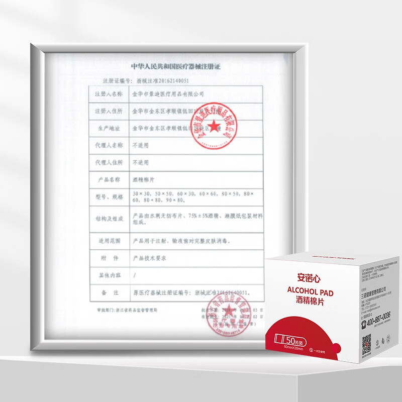三诺安诺心酒精湿巾独立消毒湿巾家用便携式 75%酒精棉片 50片
