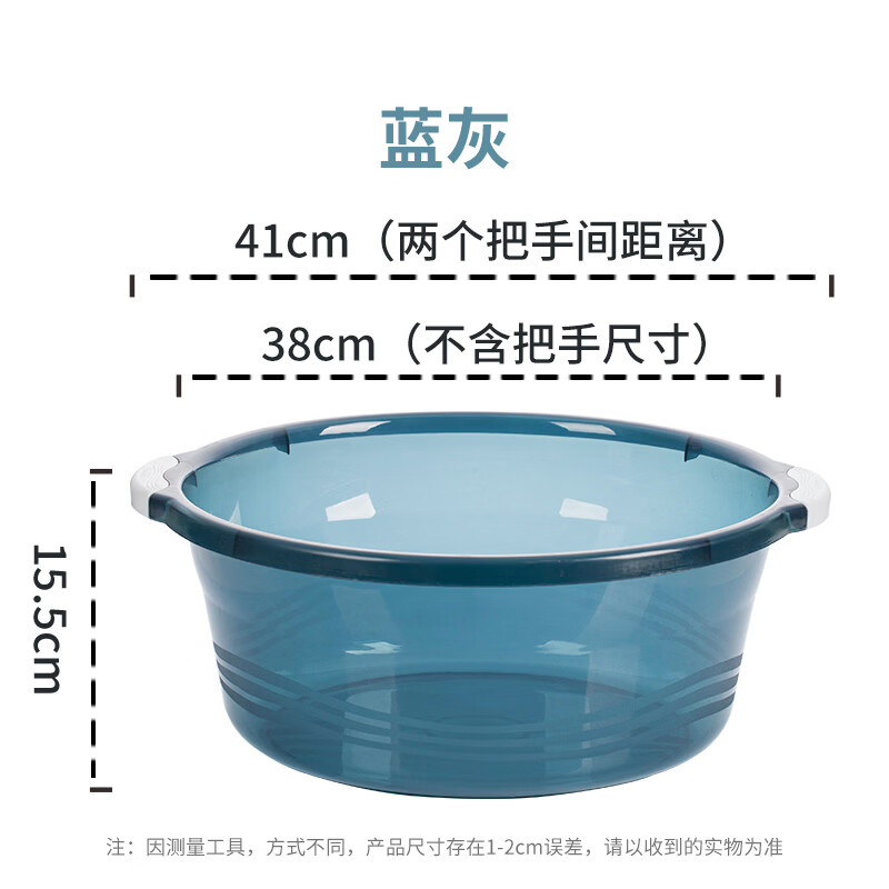 茶花 洗脸盆大号38cm单只洗脚盆洗衣盆塑料盆子泡脚盆洗菜盆蓝色*