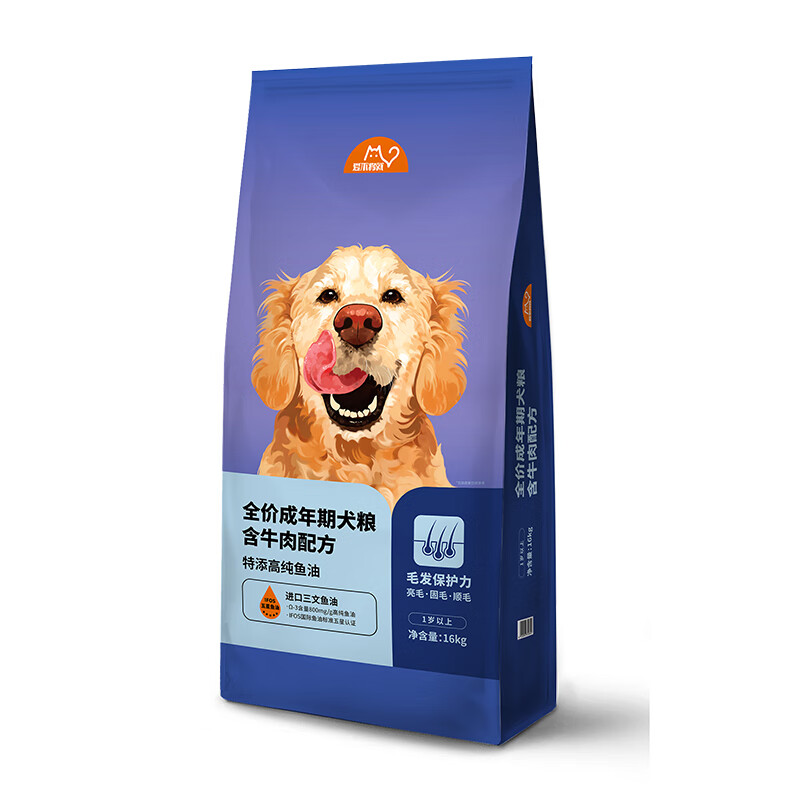 比瑞吉狗粮爱不将就小型中大型金毛成犬狗粮牛肉味16kg添加鱼油原料透明